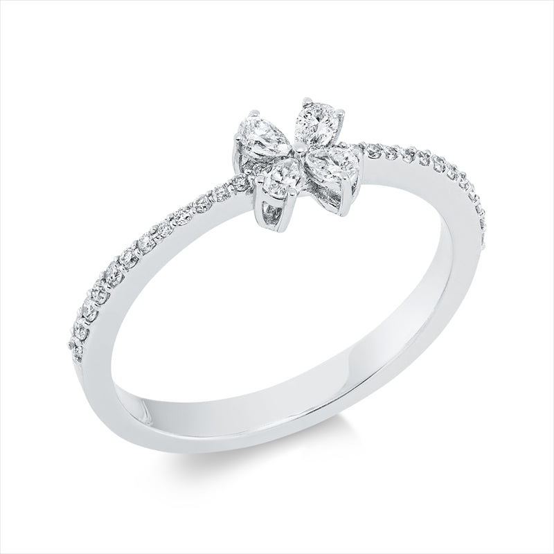 Ring 18 kt WG, 4 Tropfen 0,17 ct, F-si, 26 Brill. 0,13 ct, F-si