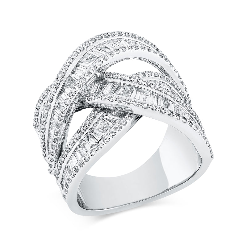 Ring 18 kt WG, 105 Bag. 1,94 ct, F-vsi, 179 Brill. 0,87 ct, F-vsi
