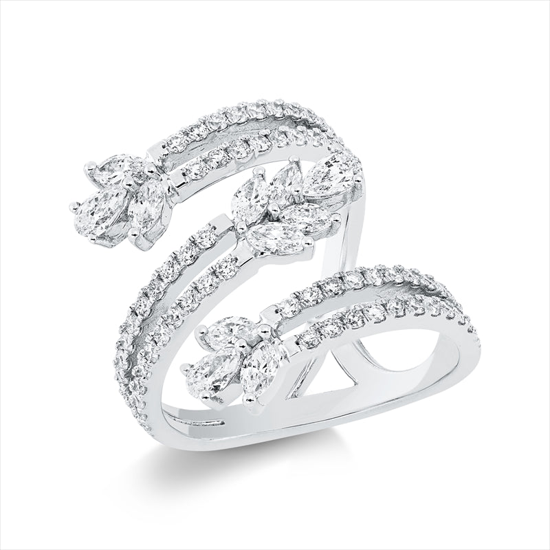 Ring 18 kt WG, 11 Fant-Schl. 0,94 ct, F-si, 66 Brill. 0,74 ct, F-si