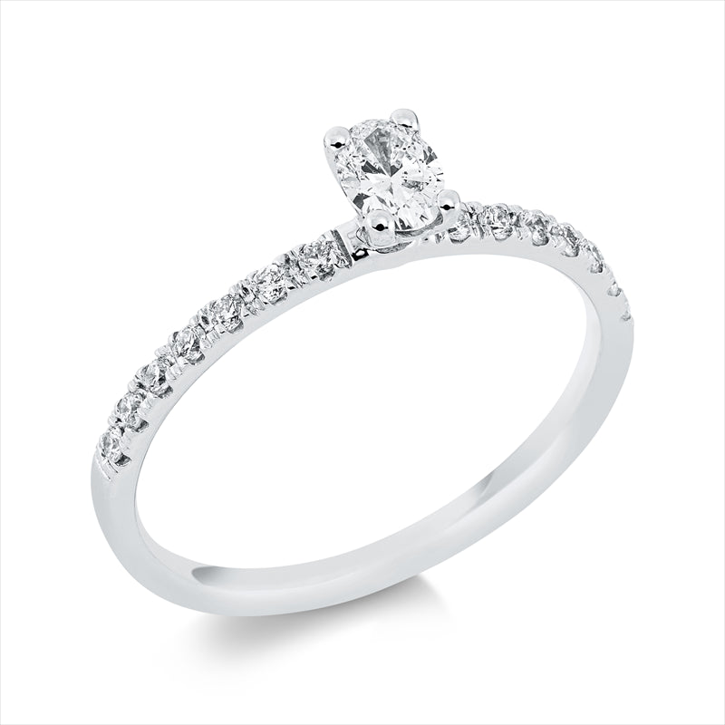Ring 18 kt WG, 1 Oval 0,22 ct, F-si, 14 Brill. 0,15 ct, F-si