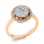 Ring 18 kt RG. Fassung rhodiniert. 23 Brillanten 0.23 ct. TW-si. 6 Brillanten 0.58 ct. TW-si. 5 Brillanten 0.05 ct. TW-si. Weite:53