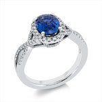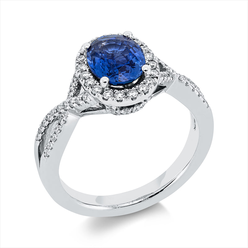 Ring 14 kt WG, 72 Brill. 0,35 ct, W-si, 1 Saphir 1,66 ct blau