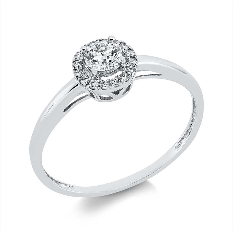 Ring 18 kt WG, 1 Brill. 0,24 ct, W-si, 16 Brill. 0,09 ct, W-si