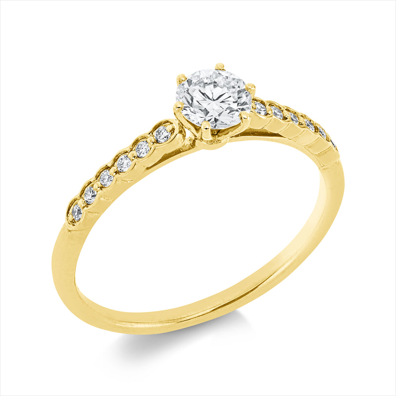 Ring 18 kt GG, 1 Brill. 0,40 ct, TW-si, 12 Brill. 0,07 ct, TW-si