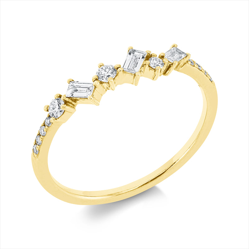 Ring 18 kt GG. 3 Brillanten 0.09 ct. TW-si. 3 Baguette 0.13 ct. TW-si. 8 Brillanten 0.04 ct. TW-pi. Weite:54