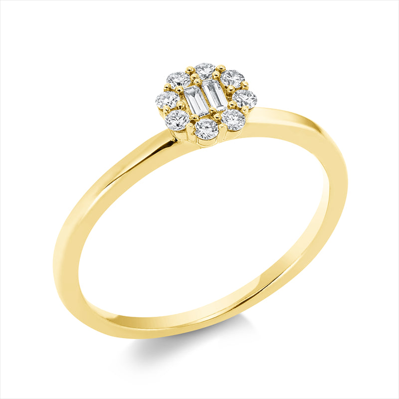 Ring 18 kt GG. 2 Baguette 0.04 ct. TW-si. 8 Brillanten 0.13 ct. TW-pi. H:5.9 mm. B:5.9 mm. Weite:54