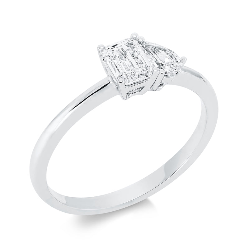 Ring 18 kt WG. GIA1487067363. 1 Sm.schliff 0.50 ct. TW-si. 1 Tropfen 0.21 ct. TW-si. Weite:54