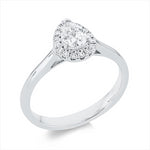 Ring 18 kt WG. 1 Tropfen 0.48 ct. TW-si. 16 Brillanten 0.14 ct. TW-si. H:7.4 mm. B:9.6 mm. Weite:54