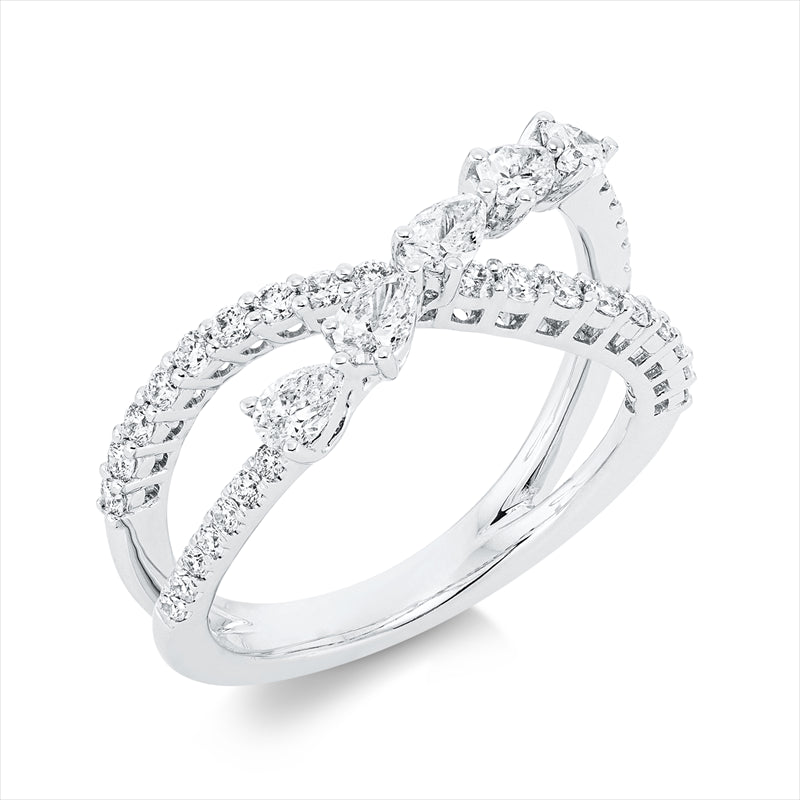 Ring 18 kt WG. 5 Tropfen 0.55 ct. TW-si. 32 Brillanten 0.47 ct. TW-si. Weite:54