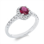 Ring 18 kt WG, 24 Brill. 0,43 ct, TW-si, 1 Rubin 0,82 ct rot