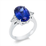Ring 950 Pt Platin, 2 Triangel 0,43 ct, TW-si, 1 Tansanit 7,82 ct blau