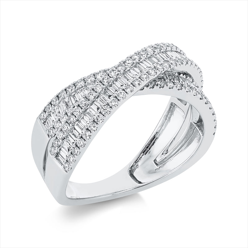 Ring 18 kt WG, 66 Bag. 0,48 ct, TW-si, 106 Brill. 0,56 ct, TW-si