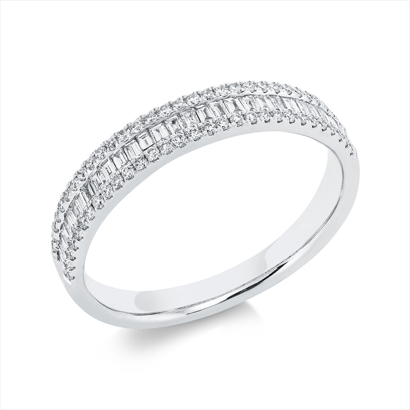 Ring 18 kt WG. 29 Baguette 0.21 ct. TW-si. 60 Brillanten 0.21 ct. TW-si. Weite:54