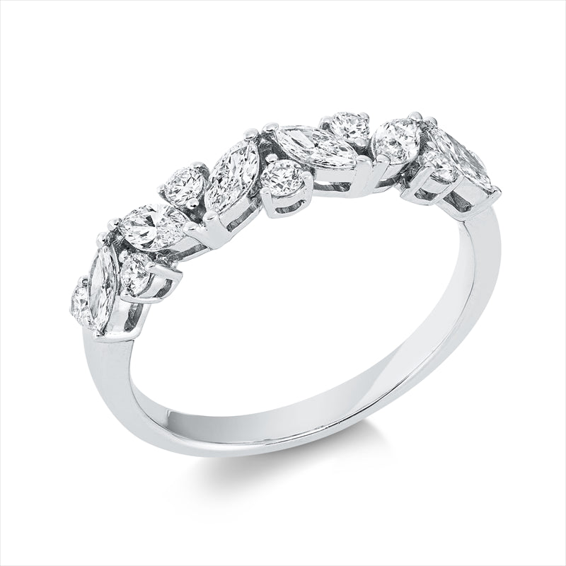 Ring 18 kt WG. 6 Navette 0.44 ct. TW-vsi. 7 Brillanten 0.20 ct. TW-vsi. Weite:54