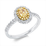 Ring 18 kt WG+GG. 26 Brillanten 0.42 ct. TW-si. 1 Oval 0.52 ct. gelb. 16 Brillanten 0.06 ct. gelb. Weite:53