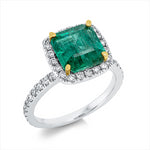 Ring 18 kt WG+GG, 64 Brill. 0,64 ct, TW-pi, 1 Smaragd 3,45 ct grün