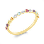 Ring 18 kt GG, 3 Brill. 0,08 ct, TW-si, 10 Farbsteine 0,35 ct multicolor