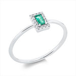 Ring 18 kt WG, 16 Brill. 0,05 ct, TW-si, 1 Smaragd 0,09 ct grün