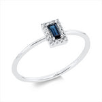 Ring 18 kt WG, 16 Brill. 0,05 ct, TW-si, 1 Saphir 0,13 ct blau