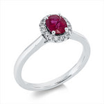 Ring 18 kt WG, 16 Brill. 0,13 ct, TW-si, 1 Rubin 0,82 ct rot