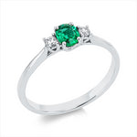 Ring 18 kt WG, 2 Brill. 0,08 ct, TW-si, 1 Smaragd 0,27 ct grün