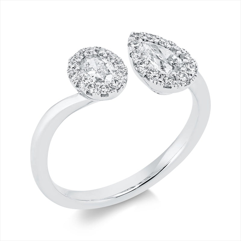 Ring 18 kt WG. 1 Oval 0.19 ct. TW-vsi. 1 Tropfen 0.25 ct. TW-si. 24 Brillanten 0.26 ct. TW-si. Weite:53