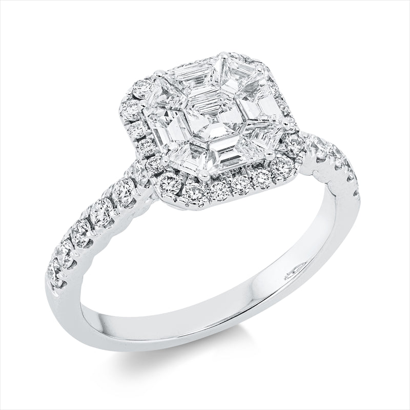 Ring 18 kt WG. 12 Brillanten 0.31 ct. F-vsi. 9 Fant-Schl. 0.68 ct. F-vsi. 20 Brillanten 0.21 ct. F-vsi. Weite:53