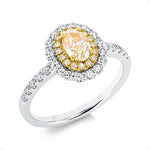 Ring 18 kt WG+GG. 26 Brillanten 0.40 ct. TW-si. 1 Oval 0.53 ct. gelb. 16 Brillanten 0.08 ct. gelb. Weite:53