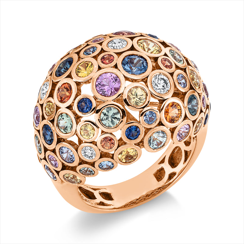 Ring 18 kt RG, 5 Brill. 0,31 ct, TW-vsi, 66 Saphire 5,02 ct multicolor