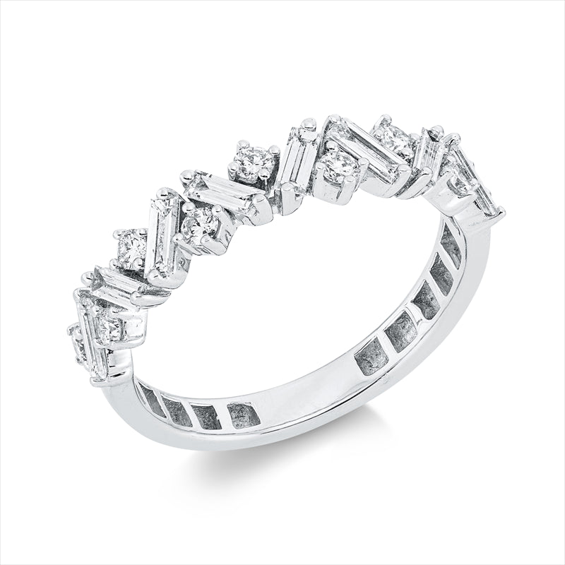 Ring 18 kt WG. 8 Baguette 0.64 ct. TW-vsi. 9 Brillanten 0.26 ct. TW-vsi. Weite:53