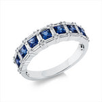 Ring 18 kt WG. 22 Baguette 0.37 ct. TW-si. 16 Brillanten 0.08 ct. TW-si. 7 Saphire 0.84 ct blau. Weite:53