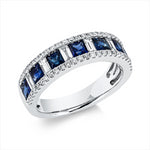 Ring 18 kt WG. 6 Baguette 0.33 ct. F-vsi/si. 52 Brillanten 0.32 ct. F-vsi/si. 7 Saphire 1.33 ct blau. Weite:53