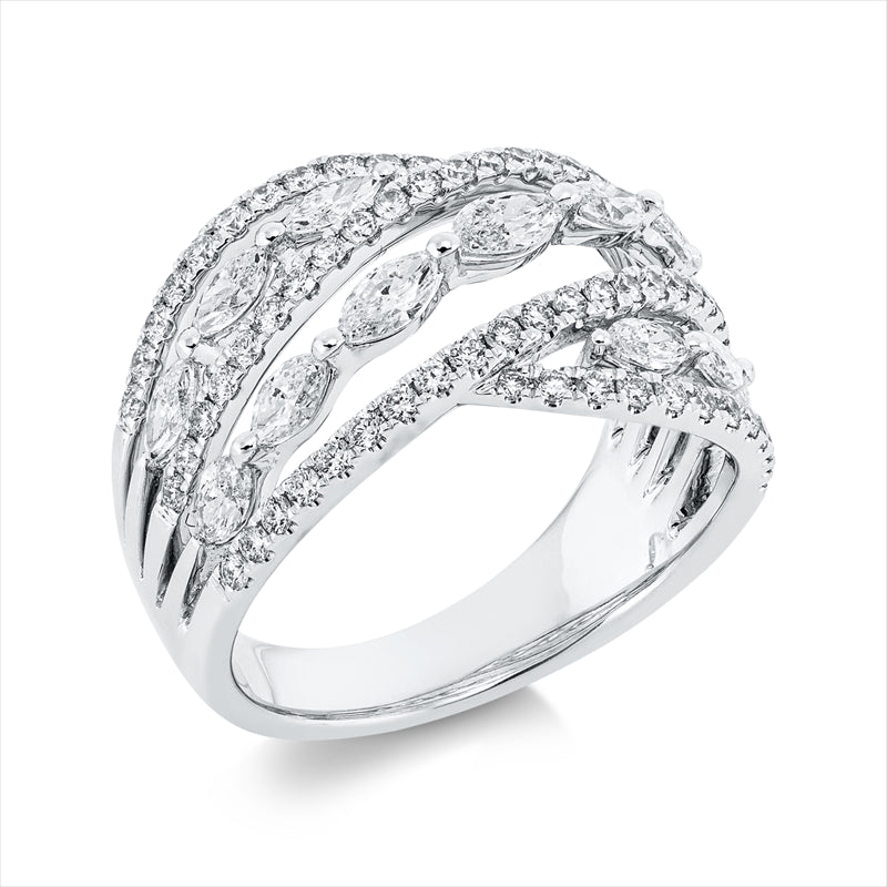Ring 18 kt WG, 13 Nav. 0,89 ct, TW-si, 68 Brill. 0,57 ct, TW-si