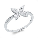 Ring 18 kt WG. 4 Navette 0.74 ct. TW-vsi. 16 Brillanten 0.08 ct. TW-si. Weite:54