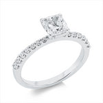 Ring 18 kt WG. 1 Cushion 1.02 ct. TW-si. 14 Brillanten 0.27 ct. TW-si. Weite:53