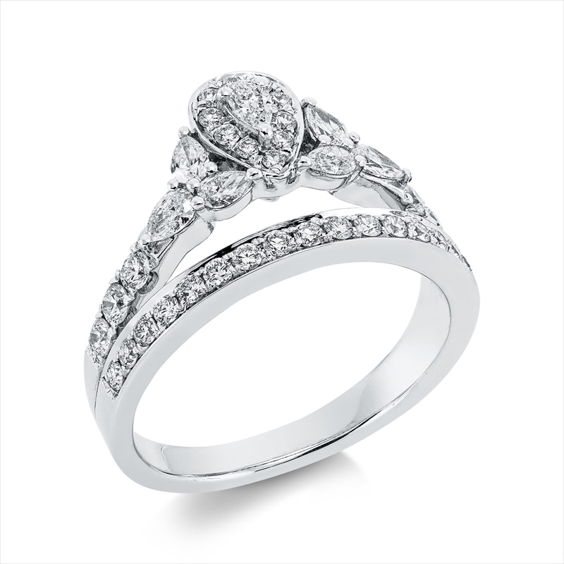 Ring 18 kt WG. 7 Tropfen 0.38 ct. TW-si. 33 Brillanten 0.54 ct. TW-si. Weite:54
