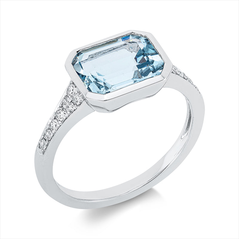 Ring 14 kt WG, 16 Brill. 0,19 ct, TW-si, 1 Aquamarin 1,95 ct blau