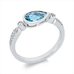 Ring 14 kt WG, 28 Brill. 0,15 ct, TW-si, 1 Topas 1,02 ct blau