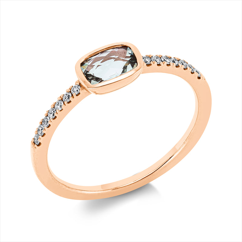 Ring 14 kt RG, 14 Brill. 0,11 ct, TW-si, 1 Quarz 0,43 ct grün