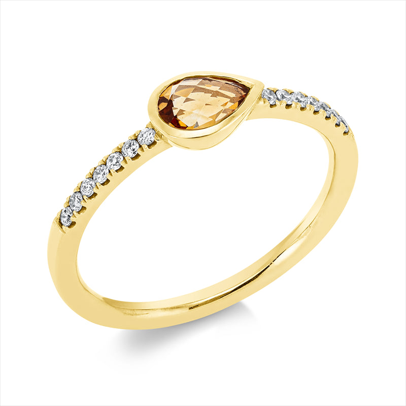 Ring 14 kt GG, 14 Brill. 0,11 ct, TW-si, 1 Citrin 0,35 ct mandarin