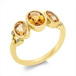 Ring 14 kt GG, 4 Brill. 0,03 ct, TW-si, 1 Citrin 0,66 ct gelb, 2 Citrin 0,98 ct mandarin
