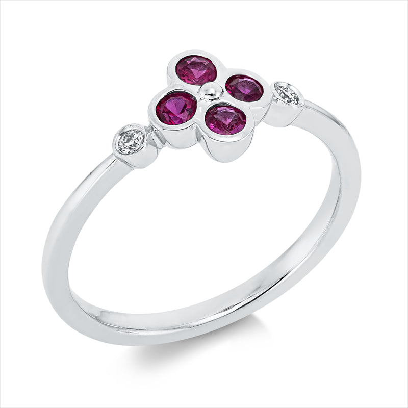 Ring 14 kt WG, 2 Brill. 0,04 ct, TW-si, 4 Rubine 0,32 ct rot