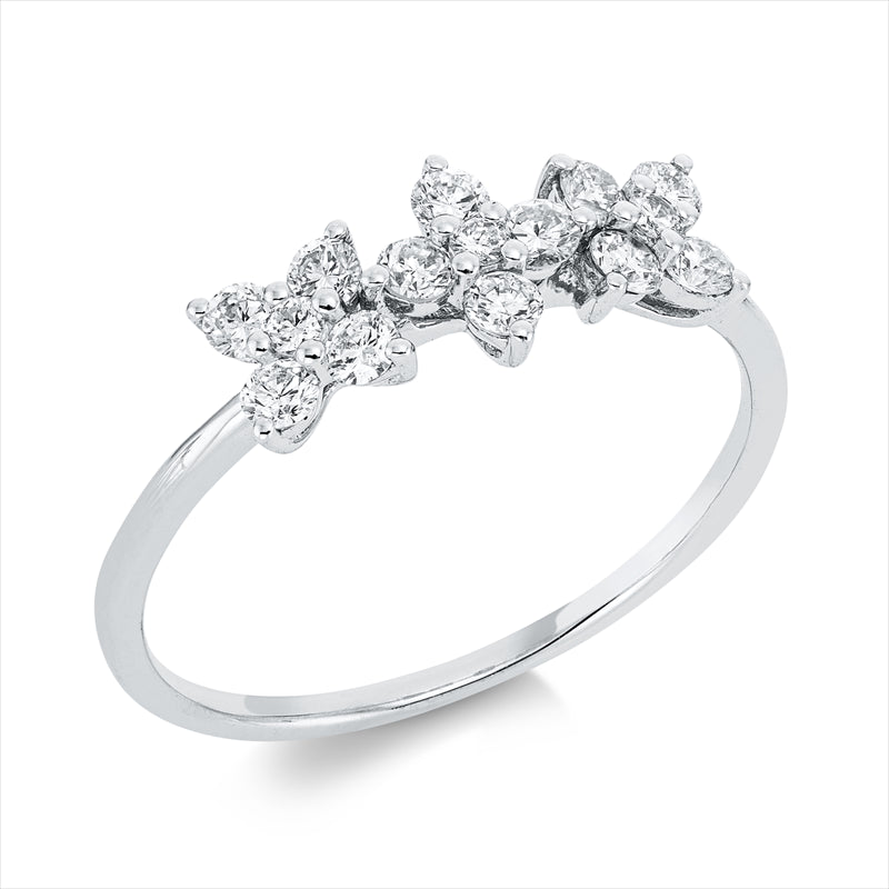 Ring 18 kt WG. 3 Brillanten 0.04 ct. I-pi. 12 Brillanten 0.41 ct. Weite:53