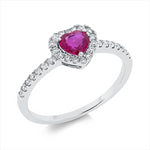 Ring 18 kt WG Herz. 30 Brillanten 0.24 ct. TW-si. 1 Rubin 0.53 ct rot. Weite:54