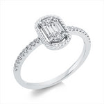 Ring 14 kt WG. 2 Brillanten 0.05 ct. TW-pi. 3 Baguette 0.10 ct. F-vsi/si. 22 Brillanten 0.13 ct. TW-pi. Weite:53