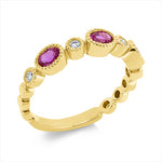 Ring 18 kt GG, 4 Brill. 0,12 ct, F-vsi/si, 3 Rubine 0,67 ct rot