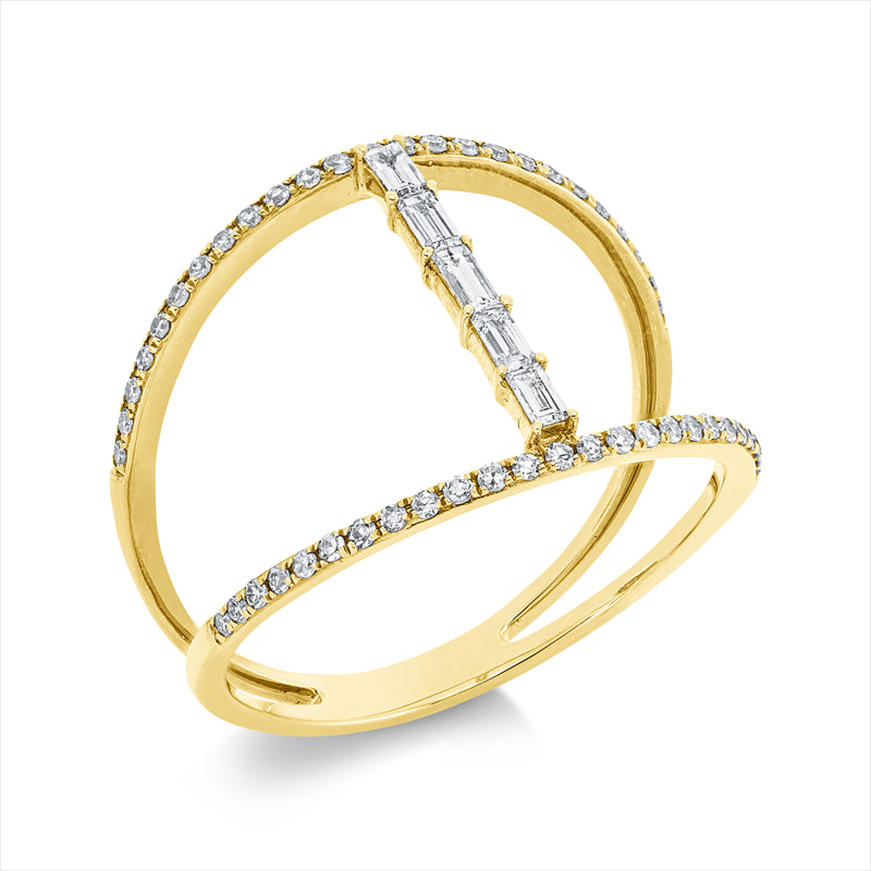Ring 14 kt GG. 5 Baguette 0.16 ct. F-vsi/si. 50 Diamanten 0.19 ct. TW-pi. Weite:54