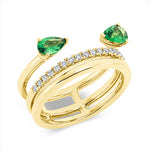 Ring 18 kt GG. 19 Brillanten 0.20 ct. F-vsi/si. 2 Smaragde 0.70 ct grün. Weite:54