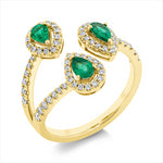 Ring 18 kt GG, 10 Brill. 0,13 ct, F-vsi/si, 54 Brill. 0,28 ct, F-vsi/si, 3 Smaragde 0,47 ct grün