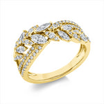 Ring 18 kt GG, 9 Brill. 0,15 ct, TW-si, 8 Nav. 0,54 ct, F-vsi, 58 Brill. 0,25 ct, TW-si